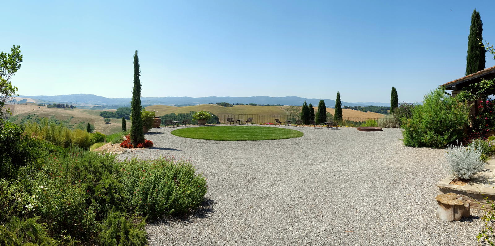The 7 apartments each have their own external area with chairs and a table to enjoy the garden and the panoramic views on the surroundings: Montalcino, Monte Amiata and the beautiful Crete Senesi and Val d'Orcia.
